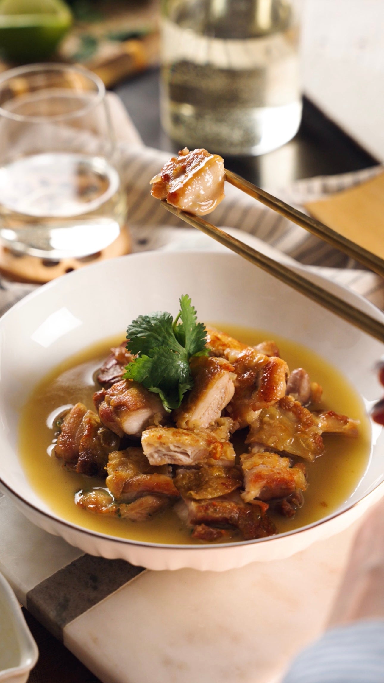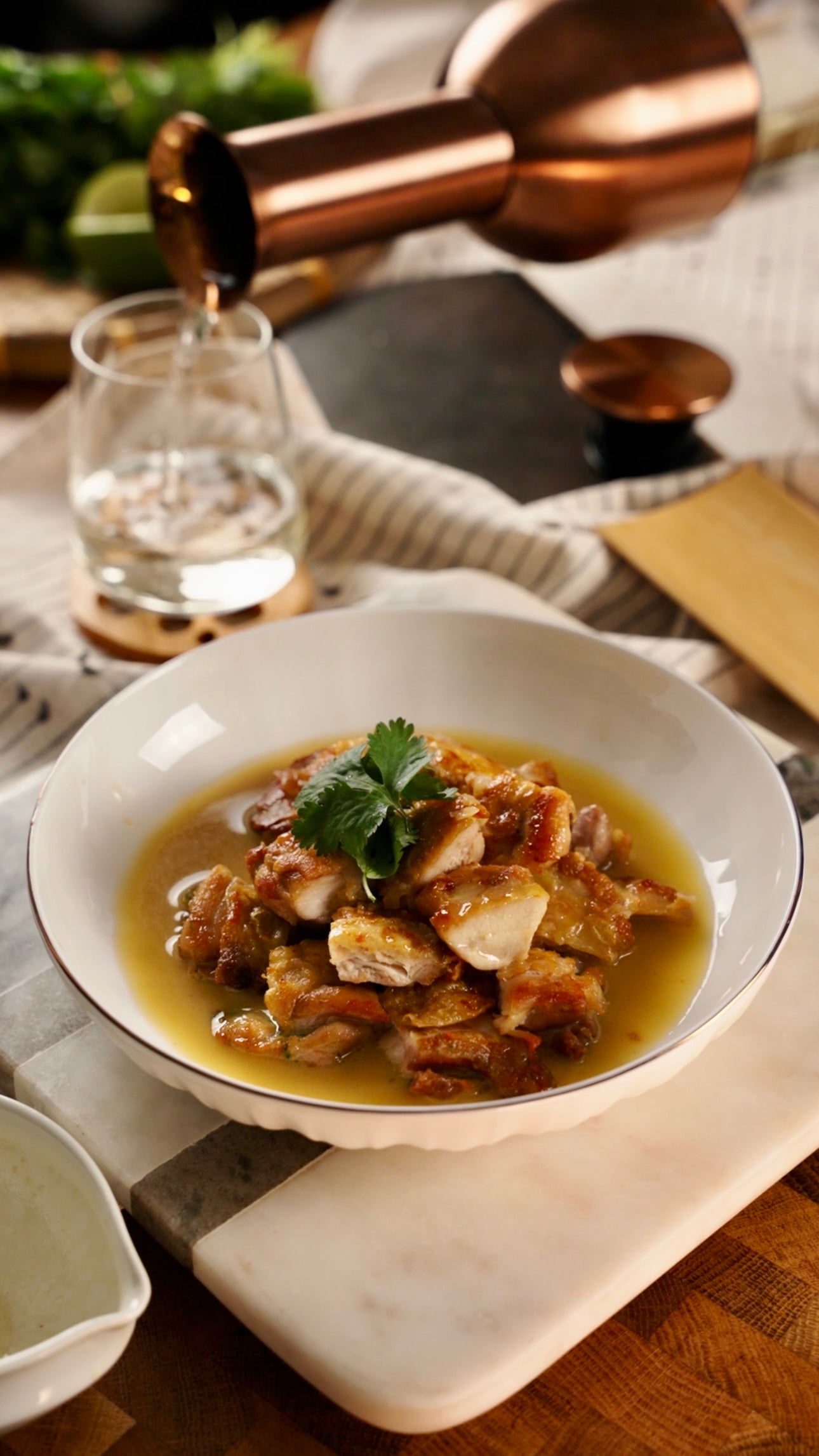 We joined Elanne Boake Jeong (@Eboake) in her kitchen, where we spoke to her about flavour, memory and the rituals that make cooking at home an act of grounding. She shares her idea of a winter comfort meal in the dish she’s created especially for us: crispy chicken thighs with a pho-spiced butter sauce. Because every meal deserves a great pairing, we’re also recommending pairing suggestions alongside her recipe.