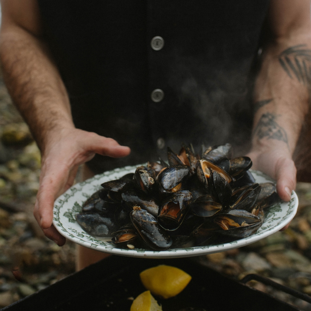 I'm from South Wales. Over the past 10 years, I've travelled the world, exploring diverse cultures and cuisines while learning the best culinary practices. These experiences continue to inspire my work today. Three years ago, I moved to the Isle of North Uist in the Outer Hebrides. Here, amidst the solitary landscape, I began cooking with fire. Since then, I've dedicated myself to this method, creating wild dining experiences and leading the outdoor cooking movement in Scotland.